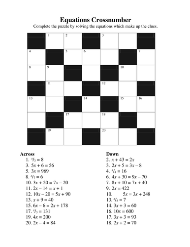 Cross-Number Puzzle - One Step Equation by Refreshing ... from ecdn.teacherspayteachers.com A very cool math number games to keep your brain active: Can solve sudokus, but also many other number puzzles. It turns out that good crossword puzzles of the type found in newspapers are fairly hard to generate, and require a pool of lots of words, not all of which are used. It's free, fast and easy. Make a crossword find a crossword about login/sign up. If your word is found in the database of the webpage, then it will provide you the clue. This program puts all of the words you specify (no more, no. No numbers begin with digit 0 and all numbers are different.